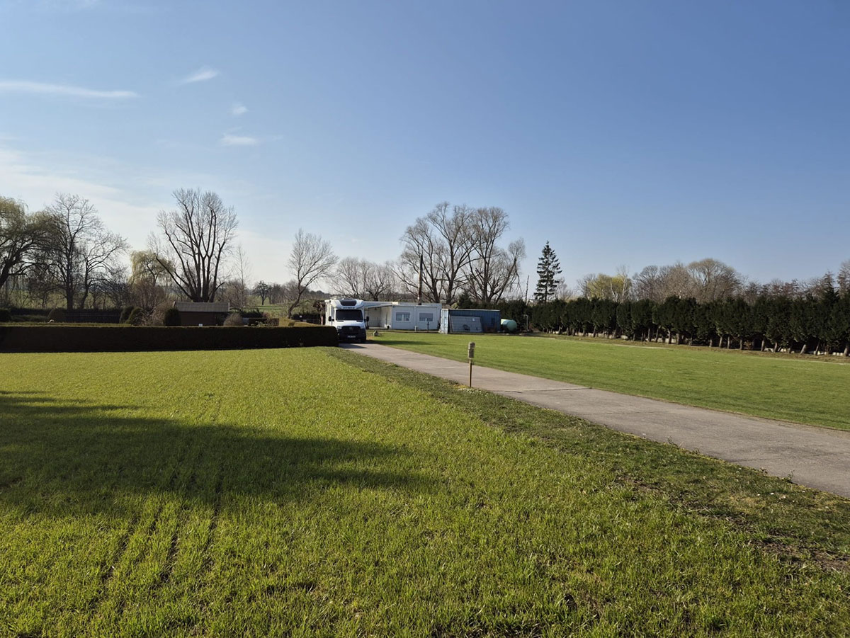 Genießen Sie die ruhige Lage des Stellplatzes mit viel Grün und entspannter Umgebung.